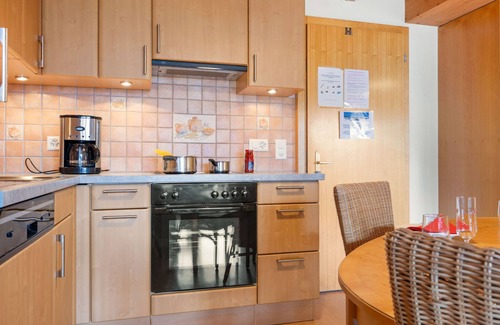"Sundance 9", 2-room apartment 48 m2 on 1st floor. Object suitable for 2 adults + 2 children. Tasteful and cosy furnishings: living/dining room with 1 sofabed (135 cm, length 180 cm), cable TV, radio, CD-player and DVD. Exit to the balcony. 1 room with 1 double bed. Exit to the balcony. Open kitchen (oven, dishwasher, 4 ceramic glass hob hotplates, electric coffee machine, Capsules for coffee machine (Nespresso) extra, raclette grill, fondue Set (chinoise, cheese)). Shower/WC. Electric heating, boiler. Balcony. Balcony furniture. Very beautiful view of the mountains. Facilities: hair dryer. Please note: non-smokers only.