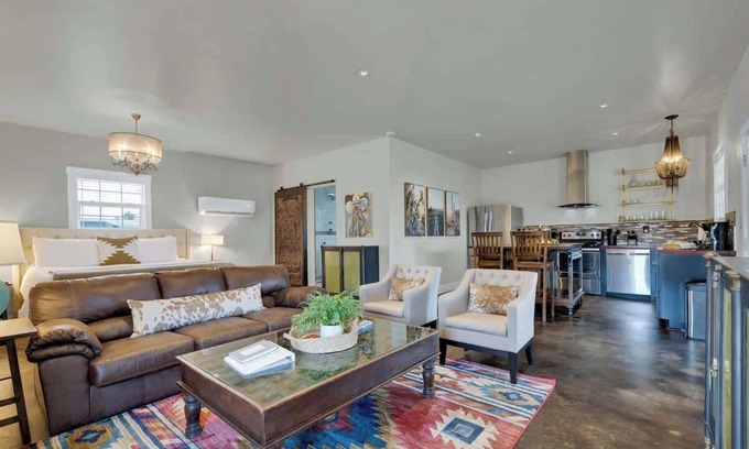 Although Sundance Studio makes you feel like you’re in a secluded space away from it all, you’re still only a short drive away from downtown Fredericksburg dining and shopping. You’ll want to stroll through the peaceful Gladheart property as well and enjoy the wildlife sightings, breathtaking sunsets, and the three friendly donkeys.