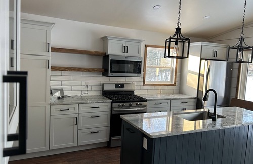 The cabin is fully furnished and well stocked to meet your needs during your stay. You will love the freestanding gas fireplace for the cool nights. This cabin is ideal for 4 adults + 2 kids, Max 6.