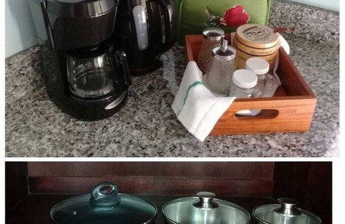 You'll enjoy an air conditioned bedroom with queen sized bed (comfortable mattress), closet space, fully equipped kitchen, a full bathroom, living room with a sofa bed, work desk and chair, and samsung smart TV . A private patio is yours to enjoy (good for outdoor dining) also you will have access to a well landscaped yard with other sitting areas and fruit trees.