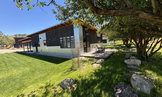 Sunflower Resort Balsam Cabin, newly opened in April of 2024, is a private, modern, pet-and-child-friendly (Pet Fee Required,) 1000 ft2 cabin with 2 bedrooms (queen in master and queen in guest) and 1 1/2 bathrooms, and just a 10-minute walk from Winthrop’s Western-themed downtown. It is a cabin on its private cul-de-sac, is very quiet, with no traffic sounds from the public roads nearby, and is surrounded by undeveloped fields.