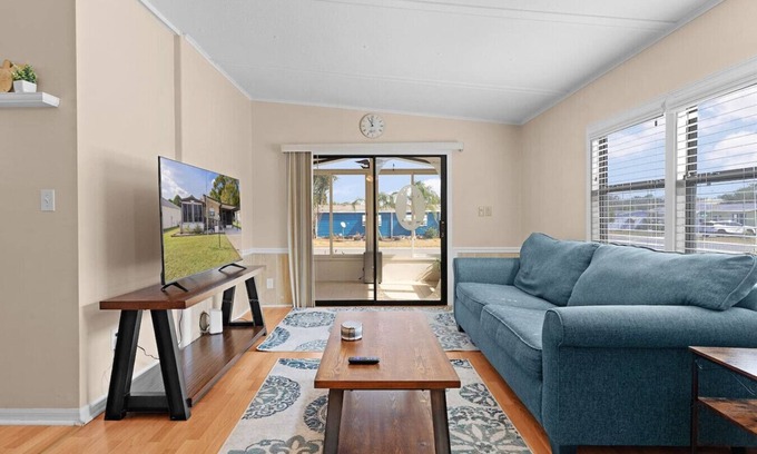 This sunny two-bedroom home makes a quiet base for 6, right in the heart of The Villages. Sip coffee in the screened porch, ride the golf cart paths to Spanish Springs, or stretch out in the lanai after a dip in the pool. With a guest pass, you’ll get full access to golf, rec centers, and more.