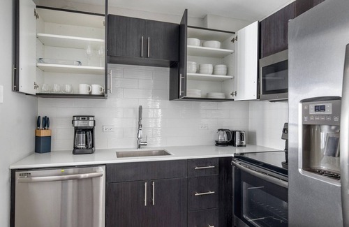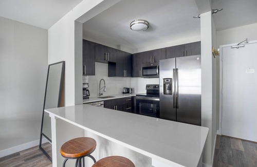 Thoughtfully designed with bespoke finishes, modern furnishings, and a fully equipped kitchen, you’ll enjoy that “I’m home” feeling with this Blueground apartment. Whether you’re lounging in your sophisticated living room streaming the latest and greatest entertainment on the smart TV or premium wireless speaker, or getting some well-earned rest on the superior quality mattress with luxury linens, you’ll fall in love with everything this Rush & Division apartment has to offer. This apartment also offers in-apartment laundry.