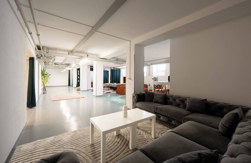 Experience unique urban living in this loft-style, 5-bed underground unit at Langstrasse, Zürich. Despite its underground setting, the space is bathed in natural sunlight through well-placed windows. Ideal for large families or groups this loft-style unit comfortably accommodates up to 10 guests The unit features two toilets and a shower, providing ample convenience. Enjoy the vibrant atmosphere of Langstrasse while staying in this stylish and spacious retreat.