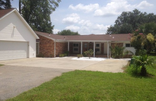 Located within 15 minutes of Beautiful Historic Beaufort, 15 minutes from Parris Island, and 45 minutes from the beaches of Hunting Island and Hilton Head, this waterfront getaway features 1 master bedroom with ensuite whirlpool tub and shower, a 2nd master bedroom with ensuite, and 1 triple twin bedroom, three full baths, a wonderful screened porch, and beautiful sun rises from our deep water dock. Crab, shrimp and fish right from the dock. Relax on the covered deck over the water while watching dolphins and stingray along with some extraordinary bird life including, Cranes, Herons, Pelicans and Egrets. Bring your kayak, paddle board and small craft and enjoy McCalley Creek! Take a trip from the dock to Hilton Head Island or Beaufort by the bay for some shopping and dining in your small craft. The home is centrally located between Savannah and Charleston. This is a great balance between peaceful country and access to Downtown Beaufort. At night enjoy beautiful views of our southern moon. Use the Gas Grill on the outdoor patio or relax in the screened in porch.