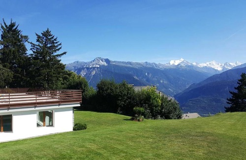 Sunny 2 BR w large terrace, stunning views & pool is located in Crans-Montana.