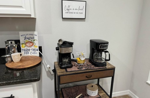 Fully-Equipped Kitchen: Whip up a feast or a quick snack in our fully-stocked kitchen! You’ll find all the appliances, cookware, and utensils you need for meal prep. Plus, the dining area seats everyone comfortably for shared meals.