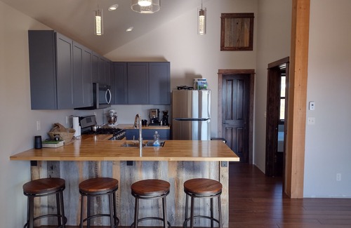 Sunny, new garage apartment in very peaceful, low density area close to trails and 3 mi from Crested Butte town, 6.5 miles to Crested Butte Mountain Resort. Wide, expansive views from this unit that has a deck facing south.