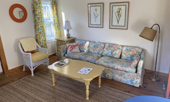 Walk to town and ferry, which makes life easier during peak months if you decide to park at the Rockland ferry lot. We can pick you up at ferry if we are available. Rustic two-story 1850s farmhouse-style with wide pine (some squeaky) floors throughout, ideal for those looking for authentic Maine island charm. Old-fashioned glider out front next to rhododendron and rose bush gets morning and midday sun. So quiet with the sound of the wind and rustling leaves and seagulls.