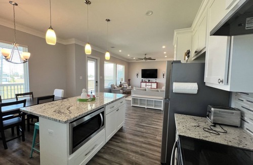 Sunny Catalina awaits your visit to make wonderful memories with family and friends. This beautiful home is located just 300 yards from Playa San Luis Beach, accessible via a safe walk (via tunnel) and 350 yards from San Louis public beach accessible by golf cart, or own car. The home is nicely furnished with beach decor and beautiful furniture, creating the perfect environment to relax and enjoy your getaway. Catalina features a nice kitchen equipped with everything needed to create amazing meals. Downstairs you will find a grill/smoker to prepare your favorite fish or steak, and also 2 picnic tables for outdoor dinner. There’s a balcony and a huge porch where you can relax in the golf breeze with the view of Galveston’s sunset. The wide screen TV gives you access to hundreds of hours of entertainment. The house has an outdoor lift cargo to help with your baggage.
