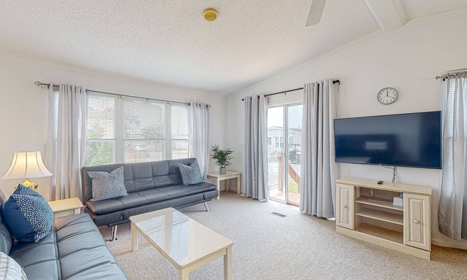 When you're not out enjoying endless fun in the sun, relax with cold drinks on the private patio or unwind inside with shows and movies on the living room smart TV. The full kitchen comes well-equipped for handling everything from beach snacks to full-course meals. Additional perks include a private washer/dryer.