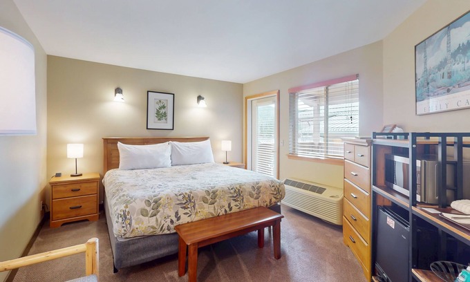 Year-round fun awaits at this studio condo located at the popular Icicle Village Resort near downtown Leavenworth. You'll be treated to mountain views of the Enchantment Peaks from your private balcony. This resort features a number of shared amenities including two pools, a hot tub, 18-hole miniature golf, the Icicle Junction Activity Center, BBQ area, basketball court, and more.