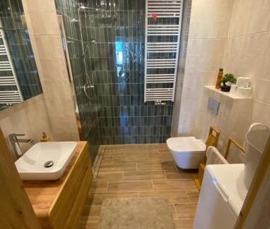 Sunny Franciszkanska 4 osob Nowy apartment 2 min z S6 offers accommodations in Koszalin, 27 miles from Town Hall and 27 miles from Kołobrzeg Railway Station. With garden views, this accommodation features a balcony. There's a sun terrace and guests can use free Wifi and free private parking. The apartment consists of 1 bedroom, a living room, a fully equipped kitchen with a dishwasher and a kettle, and 1 bathroom with a shower and a hair dryer. Towels and bed linen are offered in the apartment. For added privacy, the accommodation features a private entrance. Kolberg Pier is 28 miles from the apartment, while Koszalin Train Station is 1.9 miles away. Solidarity Szczecin-Goleniów Airport is 81 miles from the property, and the property offers a paid airport shuttle service.