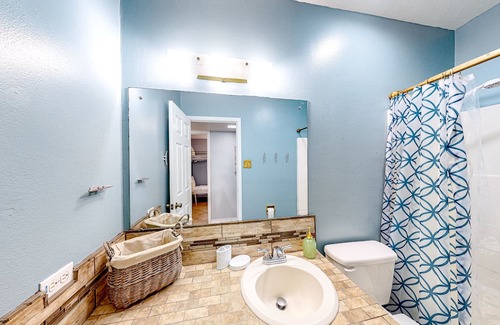 An idyllic coastal retreat awaits you and your loved ones at West Coast Whitney! With its excellent location in Aransas Pass near Corpus Christi Bay, multiple parks, and golf courses - fun in the sun is guaranteed. Continue to enjoy the lovely weather from your stay's screened-in patio furnished with comfortable seating, a TV, and alfresco dining.