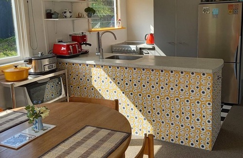 Capturing all-day sun, this two-level bach conversion to spacious home boasts superb views over Huia Bay and mountains, and a stroll to the beach and local cafe (closed Xmas/New Year). Our street featured in The Brokenwood Mysteries series, for its lovely scenic backdrop and heritage values.