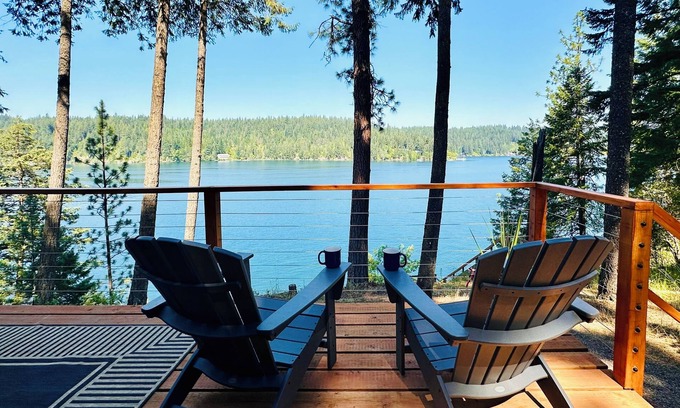 Enjoy all-day sun and your own dock at this mid-century A-Frame on exclusive Hayden Lake! Room to roam with a large flat lot surrounded by tall pine trees. You'll enjoy a panoramic lake view and sunset-facing views. The cabin has a large deck with a BBQ and dining area. There is a fire pit area for s’mores and stargazing at night. Situated on a highly desirable bay, the cabin has a large private dock to park your boat, take a swim or sit and watch the sunset. Sun and water conditions can be dramatically different around the lake, so you'll love staying here because it has the best of conditions: deep clean water (no seaweed or swamp), and all-day sunshine. The cabin is far enough from town to feel private and get away from it all, but close enough to access Coeur d'Alene if you want to spend a day shopping or go out for dinner. For those who like to cook at home, the cabin is fully equipped for a long relaxing stay on the lake. Main floor bedroom with queen bed. Upstairs loft bedroom with a queen size bed. Both room have new Tuft & Needle mattresses. The cabin sleeps four in total. Enjoy excellent Starlink WiFi, smart TV, as well as games and puzzles. For people who need to work remotely, the Starlink WiFi enables uninterrupted calls and meetings. Please note there are stairs down to the dock. We are dog lovers, so please tell us about your pet and observe the pet rules. Paved road all the way to the cabin, flat driveway direct to the door. Ample parking and room for a boat trailer. This cabin is conveniently located just a few minutes drive to Sportsman’s Access, one of the top rated recreation areas in the state for mountain biking. Silverwood Theme Park is approx 30 min away, and approx 45 min to Schweitzer Ski Resort. We hope you enjoy the simple pleasures and good vibes of an authentic lake cabin experience on gorgeous Hayden Lake.