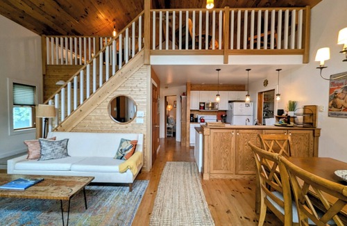 The main floor has two bedrooms, each with a queen bed. There is one full bath in the house. The spacious upstairs loft has a queen bed. There is a smart TV to log in and stream your online accounts, we do not have cable.