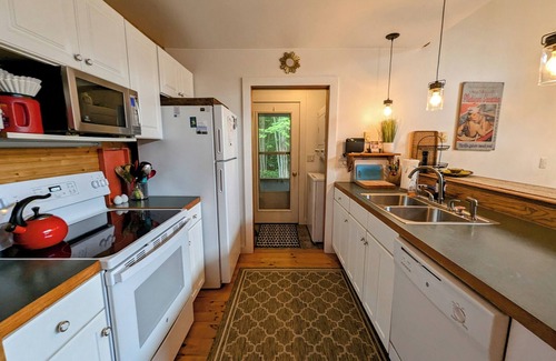 The kitchen is fully equipped, including a dish washer, microwave and laundry room. It is open to the living room and the large front deck so the cook can always be a part of the fun, wherever it is happening. Enjoy the open front porch, screened side porch and large yard. Fire pit and gas grill for use on the property and a bag toss game.
