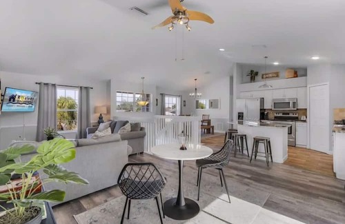 Welcome to Sunny Palms Paradise, your luxurious retreat nestled in the heart of NE Cape Coral, Florida. This 6 bedroom, 3 bathroom villa, with heated pool offers a perfect blend of comfort and convenience for an unforgettable tropical getaway.