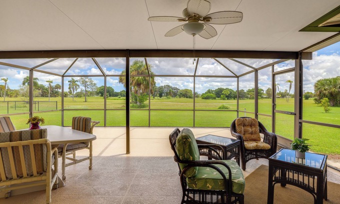 Experience the best of Florida's Treasure Coast at this Port St. Lucie vacation rental. Whether you want to feel the ocean breeze or hit the city’s best attractions, this spacious 2-bed, 2-bath home is close to it all. Grab the beach gear and soak up the sun at Jensen Beach Park, stroll along the nearby Riverwalk Boardwalk, or do some retail therapy at Treasure Coast Square. End the day enjoying the golf course views from the screened lanai or walking the cart path with your furry friend.