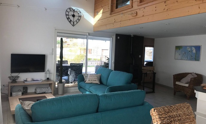 Take advantage of this pretty house with sauna and south-facing terrace to recharge your batteries and get together with family or friends. A few minutes from the town center of Gérardmer, and 5 minutes by car from the lake. On level 0: Large, very bright living room opening onto a large south-facing terrace: sofas, garden furniture, TV, wood stove, reading, games...