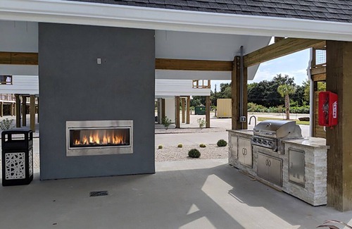 We offer an outdoor kitchen and BBQ area, fire pits, and walking trail! For our guests safety, we have security systems with cameras, key less entry, and we are a gated property.