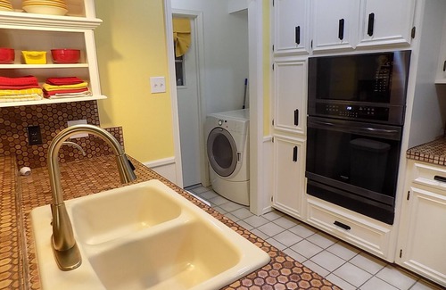 Inside, the kitchen features all the pots, pans, dishes, utensils to cook whatever you crave with your groceries from HEB or Target--both are only blocks away. You are one block from the Trinity Park playscape and walking path.