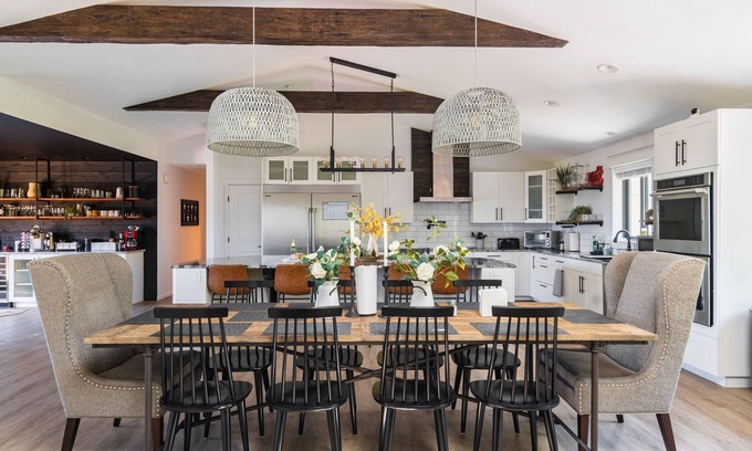 Discover a luxurious open-concept modern farmhouse, where elegance and charm