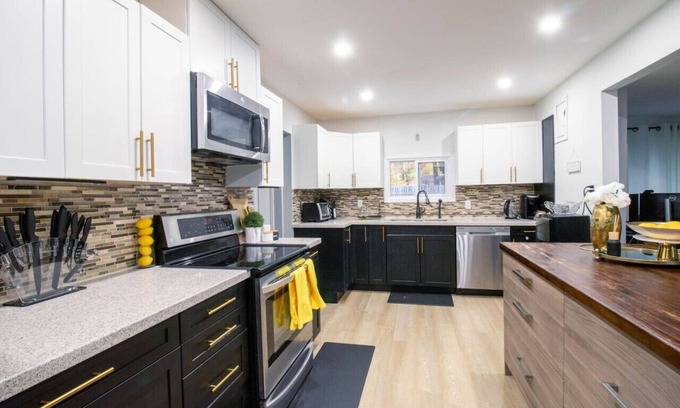 Best-rates for the Sunnyside Stay-3bdrm w/Gym! starts from $201 per night with includes Fireplace/Heating, Guest Services, Entertainment, Barbecue/Outdoor Cooking, Air Conditioner, Pet Friendly, TV, Balcony/Terrace, Security/Safety, Sports/Activities, Internet, Child Friendly, Parking, Bedding/Linens, Wellness Facilities, Kitchen, Laundry StayAndPlay offers fully equipped golf villas, golf hotels, golf resorts, luxury golf cabins, and exclusive golf retreats, making it easier than ever to find your perfect golf escape — ideal for families, peaceful getaways, or pet-friendly retreats with the whole crew.