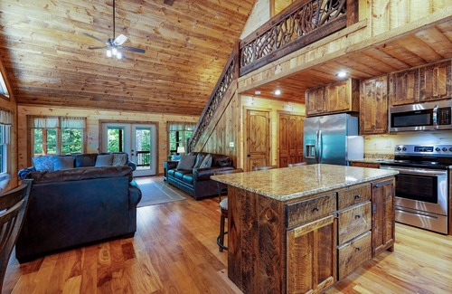 This 4 bedroom, 4 bathroom property has the comforts of home and more! Wants and needs are all wrapped up into one beautiful cabin just 20 minutes from downtown Blue Ridge!
