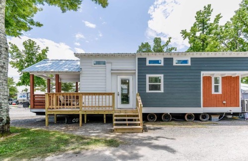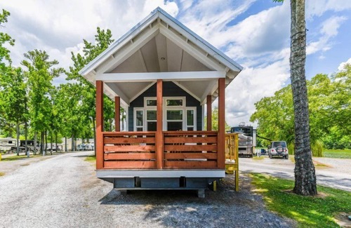 BRAND NEW tiny home located at River Rocks Landing right on the Coosa River. Are you looking for a little getaway with your family? Look no further, there’s enough room for six people in this unit and plenty of activities onsite.This unit features a queen bed in the bedroom, a unique pull out murphy bed, and a loft with two twin beds making for a cozy living space. For those staying a bit longer you'll enjoy the onsite laundry facility to help keep your family clean and fresh. The light walls with dark wood gives this home a contemporary look and feel. Enjoy an evening on the porch and relax in style while gazing out at the river. Onsite you’ll have access to three pools, a children’s play area, and a game room. Stay for a weekend or the entire week, your group will have a great time in the Sunrise Cabin! Parking for one vehicle only at each cabin, please. This is not a pet friendly cottage.