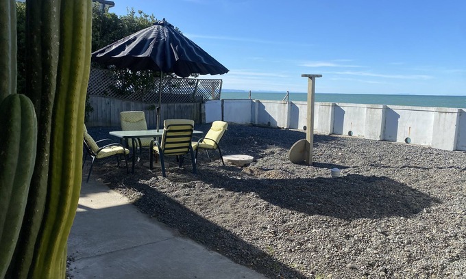 Sunrise Cottage has 2 bedrooms, a bathroom equipped with both a shower and a bathtub, a well-equipped kitchen where you can wash the dishes while gazing at the ocean, laundry facilities, and off-street parking with a fully fenced garden. The cottage has breathtaking views of the entire Cape Coast, from the Mahia Peninsula to Cape Kidnappers. Just outside of the door you can jump on the Hawke's Bay cycle trail, which boasts 200kms of easy trails and over 50 places to taste and experience Hawke's Bay. If you'd prefer to stay closer to home, the cottage is only minutes from local gems such as Elephant Hill, Clearview Winery and Restaurant, Te Awanga Estate and Hygge Cafe.