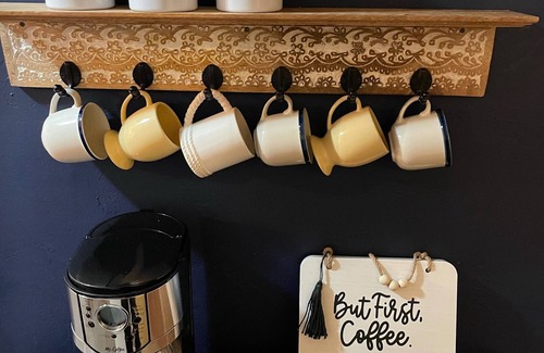 Outside is where the most time will be spent! Enjoy the most gorgeous sunrise from our boat dock. The outside covered patio has a glass table with 6 patio chairs where the day can be spent playing games or watching the large number of birds, ducks, and geese pass-by. There is also a 2-seat patio lounger, perfect for reading a book or watching kids play and 2 large white Adirondack chairs. A basic propane BBQ grill is also provided for guests use or feel free to bring your own grill, smoker, or griddle if you prefer.