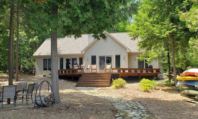 Modern comfortable house on Clam Lake's South side. is just minutes to Torch Lake.3 bedrooms, 2.5 baths. Sleeps 6 adults, up to a max of 8. The 4th bedroom has 4 bunk beds for young children.