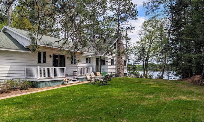 Sunrise Shores | Fun lakehome on Chain, dock, water toys, firepit, doggies ok is located in Three Lakes. Sunrise Shores | Fun lakehome on Chain, dock, water toys, firepit, doggies ok provides accommodation, featuring Parking, Pet Friendly, Security/Safety, among other amenities. This House features Parking, Pet Friendly, Security/Safety, to make your stay a comfortable one.