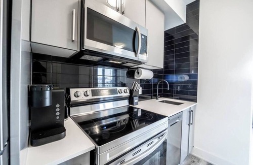 - Kitchen: Fully equipped with air fryer, Keurig coffee maker, toaster, kettle, & dishes