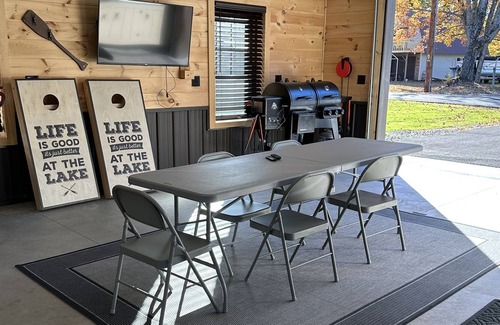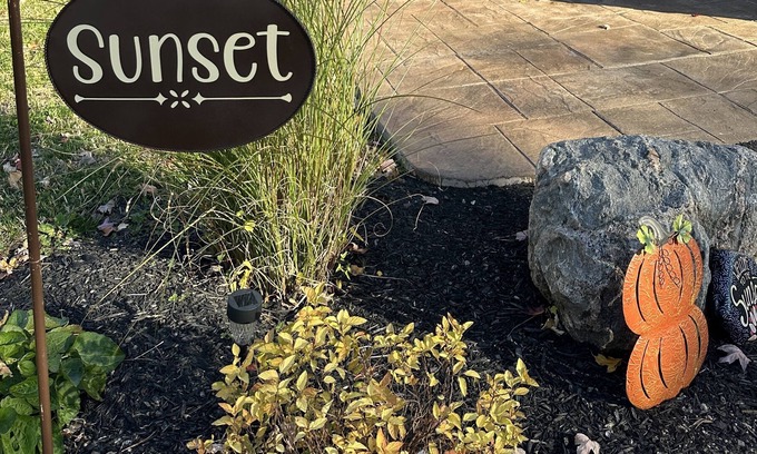 Sunset Cottage- Half of the Twin Cottages Getaway; Sunset cottage is perfect for your small group of family or friends. Everything was freshly designed to keep you comfortable on your vacation. Enjoy the outside on your own furnished deck. Or unwind with everyone at your personal fire pit. Want some privacy or not great weather? Go inside and chill out in the furnished garage (cleaning station, refrigerator table and chairs.