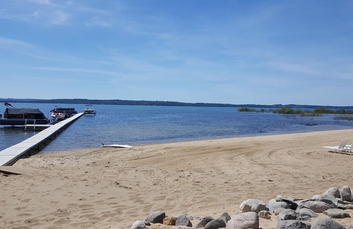 Top floor studio unit. Updated colors, new luxury vinyl plank flooring and Westin Heavenly mattress and box spring! Vaulted ceilings with great views of Grand Traverse Bay and Acme Creek. Queen bed and pull out sofa sleeper. Great space and value for a family with children. Kitchenette with mini fridge, range burners, and microwave. This unit is a beach lovers dream!