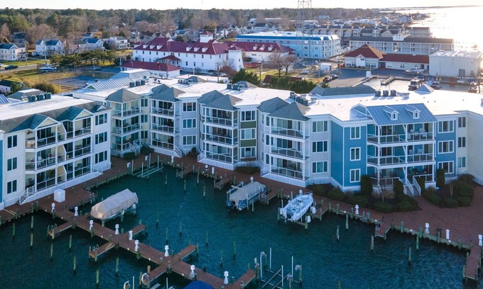 Come and sit a spell. Grab a cocktail and watch your worries sail away as you enjoy the cozy private outdoor seating area to be found at Sunset Bay Villa 118. The unit is on the ground level, providing easy access after a long day at the beach. Beautifully styled with nautical decor and special attention to detail. Situated on the edge of the bay, this villa offers a private balcony with walk-out access to the marina and a reserved 40' foot deep-water boat slip. Villa 118 at Sunset Bay boasts an en-suite bedroom with king bed, private bath featuring a stand up shower AND a bathtub - along with private outdoor patio access from the bedroom. Two other bedrooms feature a king in one, and a twin in the other. Fully equipped kitchen and dining area with coffee maker, refrigerator/freezer, dishwasher, electric range, and plenty of countertop for that family seafood feast you will want to make while you're with us. Have a few friends sit at the bar while you mix up a few cocktails, then enjoy "people-watching" on the Chincoteague Channel as the evening picks up. Once the sun goes down you can retire to the cozy living area in the heart of the villa. Maybe a movie on the flat screen? Or perhaps a game of chess? No matter what you decide on, you and your guest will most certainly enjoy your stay at Sunset Bay Villa 118. | Please Note: This unit includes a deep-water boat slip and use of the marina.