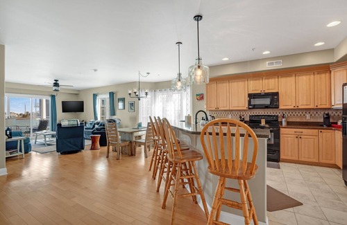 The open floor plan allows you to cook and entertain at the same time. And let's not forget the deck, the perfect spot to kick back and enjoy your morning cup of coffee or unwind with a glass of wine as the sun sets over the water. The primary bedroom is fit for royalty with a king-size bed to cocoon you in comfort. But wait, there's more! Two additional rooms, one with a king, one with two twin beds, so everyone can sleep tight and dream big. There are tv's in each bedroom as well. Don't miss out on this gem! The Sunset Bay Villa Community has an outdoor pool, indoor workout room, and outdoor dining area!
