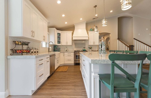 • Gourmet Kitchen & Dining: Fully equipped with high-end appliances, seating for up to 13, and a seamless flow to the sunroom and backyard for indoor-outdoor dining. Offerings include: 2 ovens, 6 burner gas stove, dishwasher, microwave, KitchenAid blender & toaster, 12-cup coffee maker, slow cooker