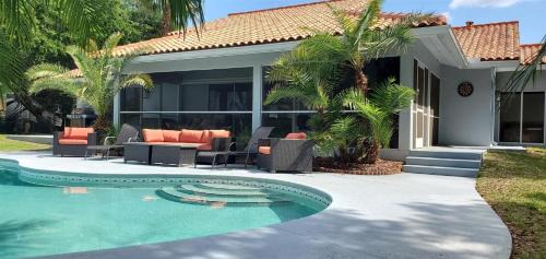 Sunset Cove offers accommodations in Clermont, 28 miles from Disney's Magic Kingdom and 29 miles from Disney's Blizzard Beach Water Park. This property offers a private pool, free Wifi, and free private parking. The property offers a 24-hour front desk. Offering a patio with pool views, this vacation home also features a satellite flat-screen TV, a well-equipped kitchen with a dishwasher, an oven, and a microwave, as well as 3 bathrooms with a bath and a hair dryer. The property has an outdoor dining area. Walt Disney World is 29 miles from the vacation home, while Disney's Boardwalk is 30 miles from the property. Orlando International Airport is 38 miles away.