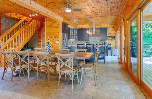 Merging with the dining room, this is the perfect place to both have a formal dining place or play a game while making lasting memories during your time at Sunset Hideaway. The kitchen is open to the dining area and is perfect for the cooks of your crew. Black– custom wood cabinetry stocked with all your favorite cooking and serving ware, granite counter tops and stainless-steel appliances are a chef's dream come true.