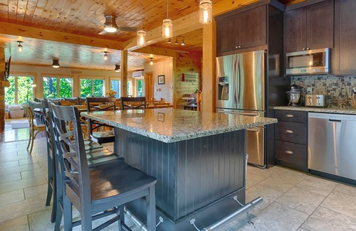 Down the paved, winding driveway, Sunset Hideaway is ideal for the nature lover, the photographer and more. Inside, the open floor plan of the great room greets you. The living area with comfortable, oversized furniture offers a TV over the mantle. Turn the gas fireplace on during a chilly Finger Lakes evening and take in the added ambiance a luxury getaway home has to offer.