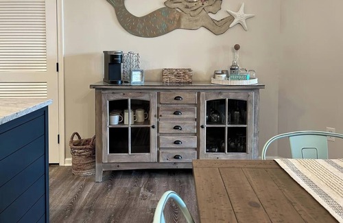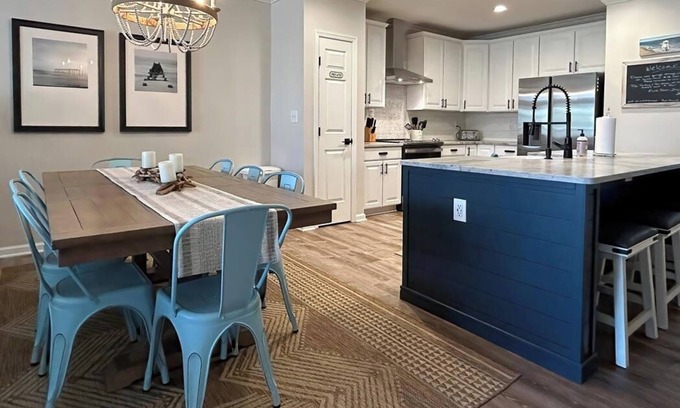 Sunset Island: This property is a spectacular choice if you want to enjoy the best of both the beach and the bay while soaking up all the luxurious amenities found in the exclusive Sunset Island private community! Bright, sunny, spacious, and family-friendly with 3 bedrooms and two bathrooms, this condo is beautifully decorated, well-appointed, and perfectly located in a very safe, private community in mid-town with quick, easy access to both the ocean and the bay! Beautifully decorated with coastal farmhouse charm, this condo has central air and internet. It features an open floor plan, combining the kitchen, dining and living areas and features multiple, comfy couches and a large flat screen smart TV, great for relaxing with family and friends. The couch has a queen sofa bed for an additional sleeping area. The kitchen features all new stainless steel appliances including dishwasher, range, microwave, garbage disposal and a full-size refrigerator with ice and water on the door, and is fully equipped with everything you’ll need. A coffee machine and a crock pot are also provided for your convenience. The unit also has a full-size washer and dryer. All three bedrooms are bright and generously sized and each has their own smart TV, comfy beds, a dresser and closet. The master bedroom has a king size bed and opens to a large en-suite bath with a soaking tub, separate shower and his-and-her sinks. The second bedroom has a queen size bed, and the third bedroom has two full-size beds. The main bathroom is large and features a full-size tub with shower and is easily accessed from the bedrooms and the common areas. This property also features a large, private deck that can be accessed from the living room and from the master bedroom. It overlooks a beautiful lake with stunning water features which you can enjoy from the deck whether you’re waking up with coffee at sunrise or relaxing with cocktails at sunset. With your rental comes access to Sunset Island’s gorgeous outdoor pool, a large indoor pool, the private bay side private beaches, docks for crabbing and fishing, walking/biking trails that surround the 37 acre island, and a state-of-the-art gym and sauna. Upon check-in you’ll receive parking passes for two vehicles, and passes to access all of the amenities listed above.