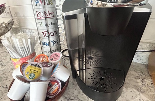 COOK over the pit or on the gas grill (wood/propane provided). Very well stocked upscale kitchen w/lots of extras. Keurig+coffee, KitchenAid Mixer, Ninja Blender, toaster oven