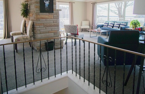Entertain yourself in the spacious living room and watch TV or just sit in and enjoy the view of Lake Muskoka and the sunlight that pours in through the walls of windows.