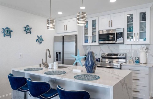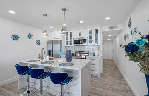 Enjoy breathtaking bay views from this privately owned, fully renovated suite in Tampa. It features a fully equipped kitchen with all the essentials, including a fridge, stove, microwave, and silverware.