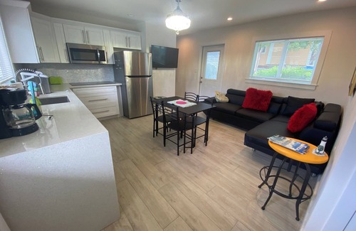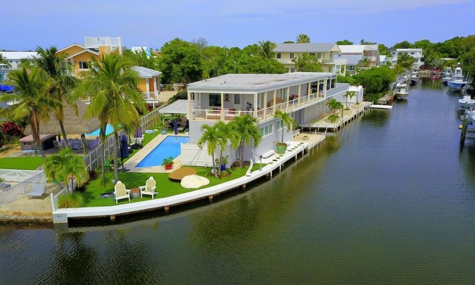 Welcome to the Sunset Peninsula! This gated, multi-family compound is perfect for those traveling in larger groups with family and/or friends who want to share great memories while maintaining their privacy. This unique and private tropical oasis welcomes all guests with lush vegetation uniquely indigenous to our fragile ecosystem. The paved driveway adds appeal and functionality, making parking for all an easy convenience. Beyond the gate, you will notice a private half ramp where small boats, jet skis, or kayaks could be launched. Often referred to as the "cruise-ship shaped" house, this solidly built, all concrete home, offers a 3 bedroom/2 bath main house (2/1 up, 1/1 master quarters down), and a separate, recently renovated 2/2 ground level/ranch style apartment. For chefs who wish to indulge their guests, the property is equipped with 2 full kitchens and a small galley. The roof top deck imparts a great vantage point for our amazing sunsets, and levered pergolas provide a great backdrop for entertaining under the sun, moon, or stars. Upstairs, the wrap around deck overlooks the canal breaming with Florida Keys marine life including dolphins, manatees and countless fish. Downstairs, the poolside provides relaxing ambience with plenty of space to lounge, read a book, take a nap, or catch up with one another. Interested in fishing, boating and/or other water sports? No problem! The property boasts over 195 ft of water frontage with deep-water dockage and open water-views. At sunset, the underwater light show begins as Green Blob lights expose backyard marine fauna including 3-4 foot tarpons and sleepy mangrove snappers. Why drive to breakfast/lunch/dinner when you can boat there? Located 2 minutes away from both the Tavernier and Snake creeks, bay/ocean access to your favorite waterfront restaurant or to an intimate picnic on the water is quick and easy. Heading to the Sandbar for some fun? The Whale Harbor Channel Bridge is within a 5 minute boat ride. For guests launching larger boats, Harry Harris Park is close by and there is ample space to park your trailer and/or RV on the compound safe and sound. The miniature putting green is perfect for those days you feel like staying in and practicing, day or night. Kayaks, electric bikes, and fishing poles are available for our guests. The waterfront, heated/chilled saline pool showcases amazing sunset views and offers a perfect place to relax after a day of water play. If you want to give the sea legs a rest, there are plenty of restaurants, pubs, and shops nearby to satisfy all your senses. CVS, Winn Dixie/Aldi, ACE Hardware, the Tavernier Cinema, and Mariner's Hospital are a stone's throw away over the Tavernier Bridge. Nestled in the heart of Indian Waterways, this truly unique estate is in one of the Key's premier neighborhoods and combines classic Florida Keys flavor with modern day comforts for all guests to enjoy.