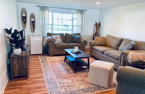 The Inside Space: The living room has a couch and a love seat and a TV with access to Netflix and has a selection of board game, please note there is no cable television provided. The master bedroom has one queen size bed, with a view overlooking the water. The second bedroom has 2 sets of bunk beds, full size on bottom and twin on top. There are ductless air conditioning units in each bedroom and the living area. For the winter months, each room has a ductless heating units. Lower heating/AC unit temperature when leaving the house for any reason. Do not put on heat/air conditioners on along with opening windows, as it is unnecessary.